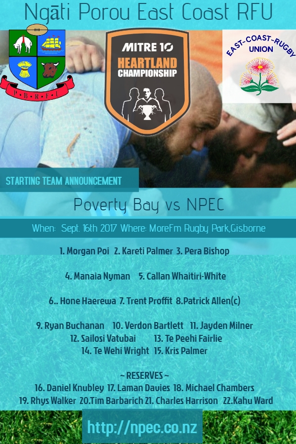 NPEC team to play Poverty Bay – SAT.16TH SEPT Share on Facebook Share Share on TwitterTweet Share on Pinterest Share Share on LinkedIn Share Share on Digg Share